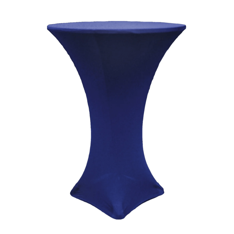 BlueRound Spandex Cocktail Tablecloth: Blue1 Elevate your event style with our Round Spandex Cocktail Tablecloth, the perfect fit for weddings, parties, corporate events, and special celebrations. Made from high-quality stretch spandex, this table cover provides a sleek, modern look that hugs your cocktail tables tightly for a wrinkle-free finish.